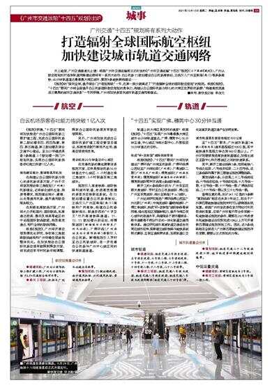 广州交通“十四五”规划将有系列大动作 天上地面,广州交通提速无止境!根据广州市交通运输局正式印发的《广州市交通运输“十四五”规划》(以下简称《规划》),广州从航空枢纽的打造到轨道网络建设都