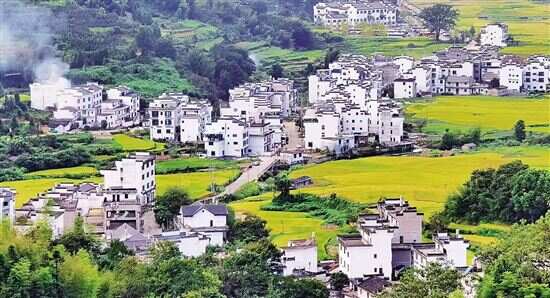 ■金秋时节,位于江西省婺源县的洙西,白墙黛瓦,如诗如画。稻田一片金黄,等待着辛勤的农民前来收割。(楼文忠/摄) |