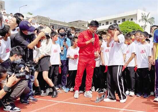 新快报讯 记者李红云 通讯员钟轩报道 昨日上午,广东省中山市体育运动学校红旗招展、鲜花簇锦,万众期待中,结束了全运会征程的亚洲飞人苏炳添,回到家乡广东中山,来到他的母校——中山市体育运动学校师生们中间,受到了家乡人民的热烈欢迎与祝贺。 17年前,15岁的苏炳添在中山市中学生田径100米赛场上,跑出11秒72的成绩以第一名的身份进入体校。如今32岁的他,在东京奥运会上以9.83秒成绩进入决赛,成为中国历史上第一个跑进奥运会男子百米决赛的选手。这个数字蕴含着深刻的意义,既是苏炳添在东京奥运会创造的惊人成绩,也将继续鼓舞下一代中山体育人奋勇向前。 在欢迎会上,苏炳添上台发表返校感言:“东京奥运会圆满结束了,优异的成绩背后是祖国的支持。成绩的跨越突破,离不开中山人民对我的支持。我今天再次回到母校,一切都是那么熟悉!”接下来,苏炳添将自己的奥运签名战衣赠送给中山体校,向母校表达谢意,并给学弟学妹签名留念,并在跑道上指导学弟学妹们跑步技巧。 “我有4年没有回过自己的母校了。上一次回来还是2017年,当时我准备结婚,来到中山体校给教练、老师派请帖。今天我再次回到我的母校,这里的感觉还是那么的熟悉。”在接受媒体采访时,苏炳添对学弟学妹们寄予殷切期望:年轻人,在自己的学习、生活、工作中都不要轻易地放弃自己,不要轻易放弃上天给你与生俱来的天赋。好好把握它吧。机会都是平等的,只要不断努力,适当的时候,能把握住属于自己的机会,你就会“一飞冲天”!