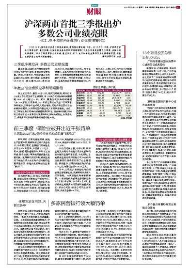 沪深两市首批三季报出炉 多数公司业绩亮眼