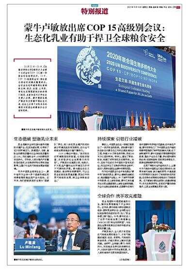 蒙牛卢敏放出席COP 15高级别会议:生态化乳业有助于捍卫全球粮食安全