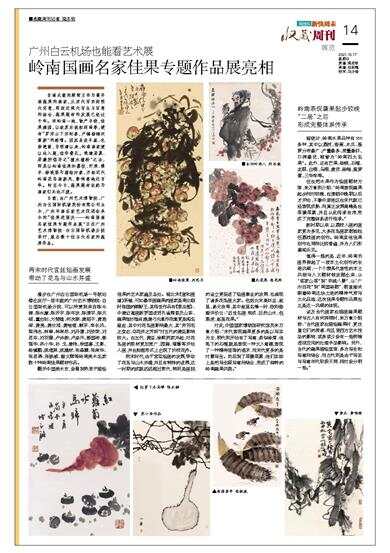 广州白云机场也能看艺术展 自南北朝的顾野王作为最早画蔬果的画家,从宋代写实到明代写意,再到近现代写生与写意的结合,蔬果题材的发展已经过千年。而岭南一地,物产丰饶,佳果满园,以故苏东坡初到南