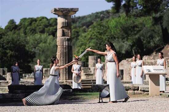 ■18日,北京冬奥会火种在奥林匹克运动发祥地——希腊伯罗奔尼撒半岛的古奥林匹亚采集成功。在有着两千多年历史的赫拉神庙遗址前,奥运火种再次为北京点燃。新华社发