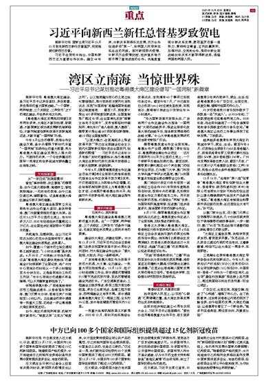 ——习近平总书记谋划推动粤港澳大湾区建设谱写“一国两制”新篇章 据新华社电 粤港澳大湾区建设,是习近平总书记亲自谋划、亲自部署、亲自推动的重大国家战略。“一个国家、两种制度、三个关税区、三