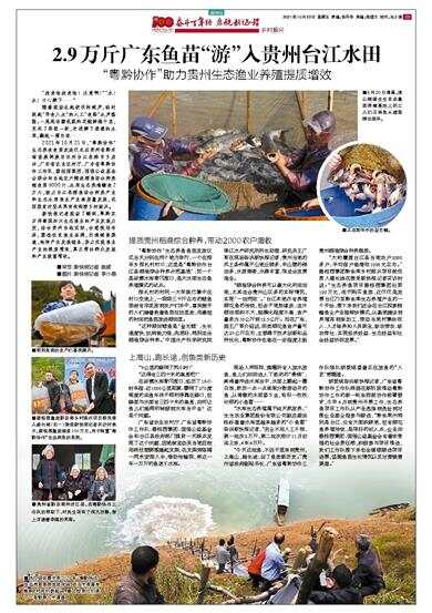 “粤黔协作”助力贵州生态渔业养殖提质增效 “放鱼啦放鱼啦!注意啊!”“水!水!小心脚下……” 随着现场此起彼伏的喊声,临时筑起“导鱼入水”的人工“鱼路”水声隆隆,一尾尾活蹦乱跳的花鲢