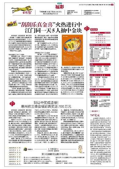 新快报讯 记者陆妍思 通讯员李娜报道 “彩民朋友们,请珍惜每一次中奖机会!”记者从惠州福彩中心获悉,今年前三季度,该市福利彩票近700万元成弃奖,数据十分惊人。 据统计,2021年1-9月