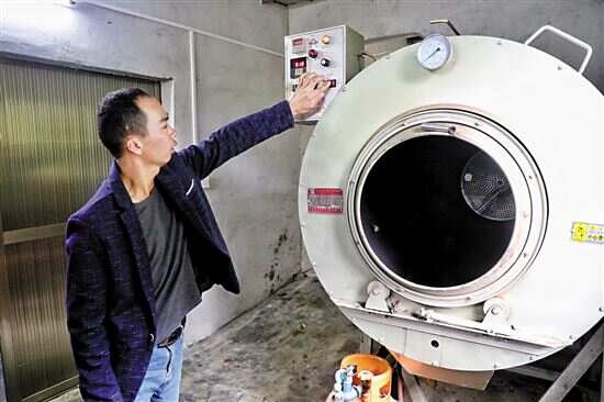 ■潮州市潮安区万峰林场望京坪村,村民蓝通志在家用机器制茶。 |