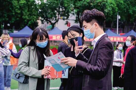 广东省2022届普通高校毕业生供需见面活动财经政法类专场举行 新快报讯 记者王娟 通讯员黄程灿报道 “直播带岗”、名所名行扎堆揽才、一对一指导就业……昨日,广东省2022届普通高校毕业生系列供需见面活动财经政法类专场在广东财经大学举行,453家用人单位参加本次招聘活动,为毕业生提供了21161个岗位,吸引了23331名毕业生前往求职。其中,370多家单位现场为毕业生提供16322个岗位,吸引了3000多名毕业生现场寻找伯乐。相关负责人表示,随着经济复苏,财经政法类人才需求持续增长。 知名银行、证券公司、会计师事务所……招聘会现场,记者看到不少知名企业纷纷参加,吸引了不少毕业生大排长龙。据悉,供需见面活动采用“网络+现场”模式,将招聘求职过程延伸到网络,让用人单位和求职学生在网络上充分互动。参加本场招聘活动的企业信息,包括企业简介、岗位需求及招聘人数等,均提前在“广东大学生就业创业”平台上发布。让毕业生提前了解用人单位需求,提高求职效率和应聘精准度。 有意思的是,今年还首次启用“直播带岗”这种大学生喜欢的形式推广财经政法类专场招聘活动,并邀请专业的HR充分宣传本场招聘会的企业和岗位,拉近了岗位与求职者的距离,大大提高了招聘活动的成功率。 截至目前,广财大今年已经举办了约20场招聘会。广东财经大学学生就业指导中心主任苏明华透露,从招聘情况来看,随着广东经济的复苏,各用人单位对财经政法等各类人才需求持续增长,前来宣讲的企业也比往年增加了。与此同时,大量企业为毕业生提供了丰富的就业岗位。从供需情况来看,求职比例达到1∶250(一个学生有250个岗位)。