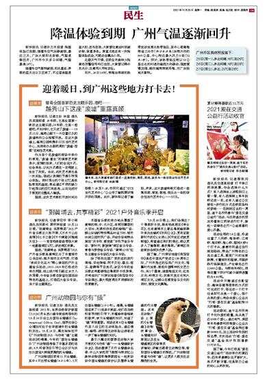 新快报讯 记者许力夫报道 降温体验已到期,随着冷空气东移减弱,最近三天,广东大部阳光积极,气温逐渐回升,广州市今天多云间晴,气温最高26℃。 随着冷空气影响减弱,阳光重返,养眼的蓝天白云又