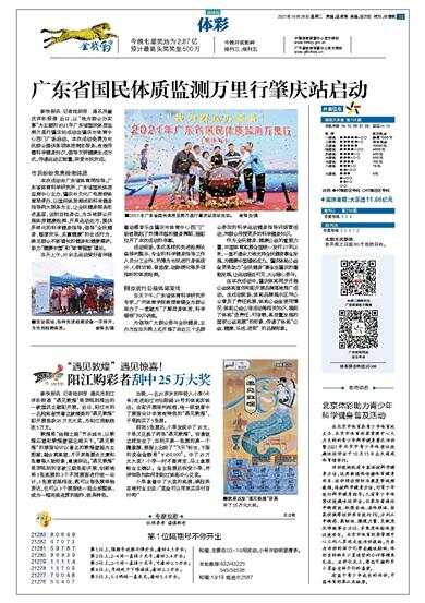 新快报讯 记者陆妍思 通讯员肇庆体彩报道 近日,以“我为群众办实事”为主题的2021年广东省国民体质监测万里行肇庆站活动在肇庆市体育中心西门广场启动。本次活动免费为市民群众提供各项体质测定服务