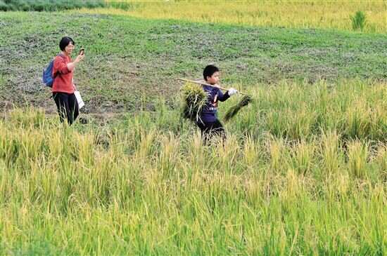 ■10月31日,在广州海珠国家湿地公园,家长带着小朋友在一小块稻田里收割稻谷。“城市里长大的孩子接触农田的机会很少,有这样一个地方,周末让他们体验一下秋收农业劳动也是不错的实践。”一位家长欣喜地说。新快报记者 李小萌/摄影报道