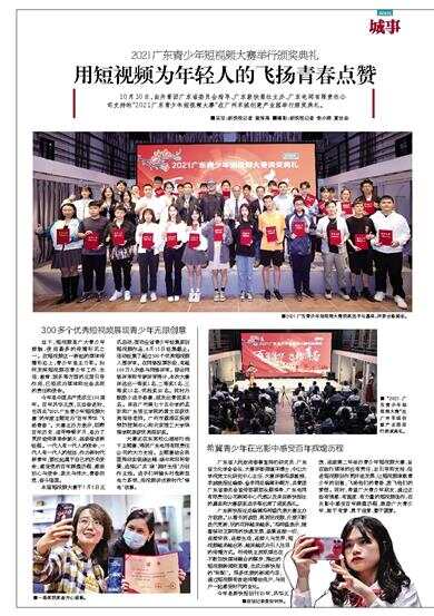2021广东青少年短视频大赛举行颁奖典礼 10月30日,由共青团广东省委员会指导、广东新快报社主办、广东电网有限责任公司支持的“2021广东青少年短视频大赛”在广州羊城创意产业园举行颁奖典