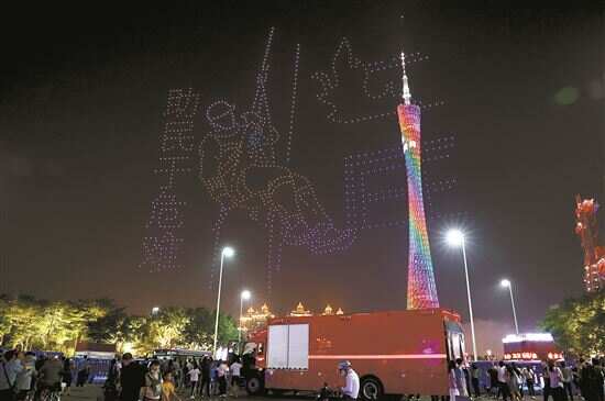 ■11月6日晚,广州市消防救援支队在花城广场和海心沙亚运公园举办广州市“119”之夜暨消防科普嘉年华活动,现场无人机进行编队表演。新快报记者 孙毅/摄