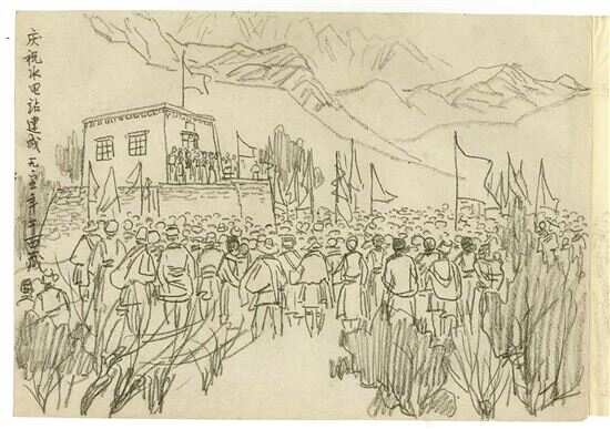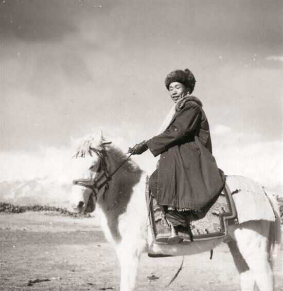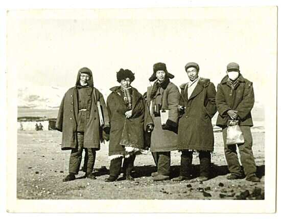 ■梁世雄随中央代表团赴西藏藏北草原采风留影,右二为梁世雄,1965年 |