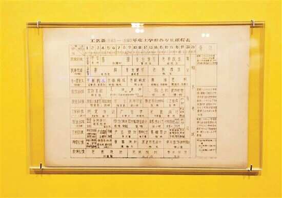 ■邝声老师展览区域展出的一张1985年-1986年度工艺系专业课程表。 |