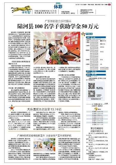 广东体彩助力乡村振兴 新快报讯 记者陆妍思 通讯员粤体彩报道 近日,广东省体育局、省体彩中心“公益体彩捐资助学”活动助学金发放仪式在陆河县河田中学第一报告厅举行。陆河县副县长彭武标、县教育