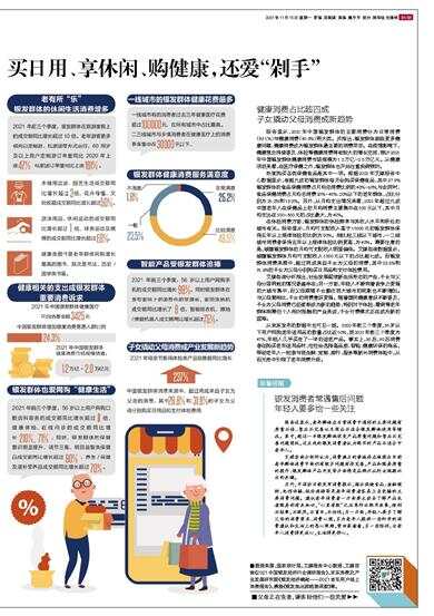 健康消费占比超四成 子女撬动父母消费成新趋势 报告显示,2021年中国银发群体的主要消费分为日常消费(39.1%)与健康消费(40.9%)两大类。并指出,银发群体面临更多健康问题,健康消费