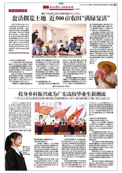 广东千名大学生志愿者奔赴粤东粤西粤北驻镇帮镇扶村;其中,粤东粤西粤北户籍人数占比超九成 11月15日,由团省委、省文明办、省委农办等多部门联合举办的2021-2022年度广东高校毕业生志愿