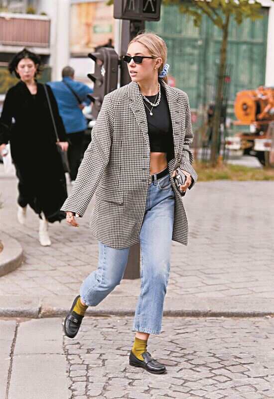裤子配乐福鞋时,以8分长为佳,袜子选择明艳色性能让整体造型更时髦。 |