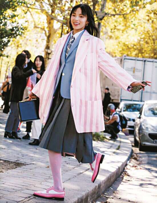 短款百褶裙外,中长款百褶裙也可穿出“岁月静好”的学院感,配领带或领结这类学院风的经典配饰,马上产生制服感,更符合学院风标准。 |