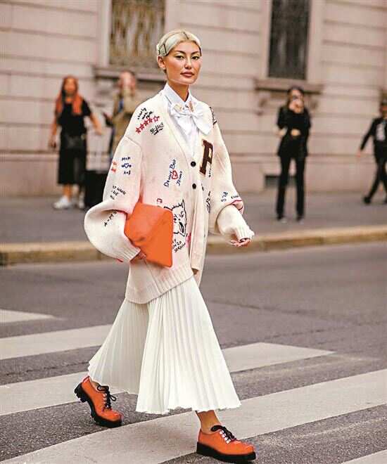 “学院风”浩浩荡荡回归,很多秀场的成衣系列都可看到经典学院风设计,往年流行的学院风更多是融入现代设计以契合时下流行元素,今年流行的学院风更注重勾勒上世纪八九十年代的复古气息。 ■新快报记者 梁彧/文(资料图片) 什么是学院风 学院风(Preppy Style),最初代表身份象征,后从1930年代开始在大学女性间流行,1950年开始学院风注入运动气息,与帆船、长曲棍球等体育项目产生密不可分的联系。1980年代正式成为流行趋势之一。 Focus A 经典搭配 西装+乐福鞋 西装+乐福鞋可将学院风经典搭配法则展现得淋漓尽致。 学院风西装通常会结合经典格纹元素或是套装,以中长、宽松版型为主。 乐福鞋的时髦秘诀在于与各色袜子间的组合碰撞——想经典就配黑袜,想青春则选白袜,想显活力?当然是各种彩色花纹的袜子啦。 Tips 1 记住一个永不出错的乐福鞋选配袜子法则:短袜可以花哨,长袜必须净色。因为花袜子会有膨胀感,很容易在视觉上让小腿变粗。 2 今年还有一个高阶袜子穿法,即将袜子叠穿,露出里面那层的一个小边,特别有少女感。不过如果你是“粗脚踝星人”,这个流行慎入。 Focus B 效果拉满 针织衫+百褶裙 学院风经典单品自然少不了针织衫。 V领设计、宽松版型,元素上选带有绞花螺纹编织或菱格格纹,还可考虑带字母或徽章元素的。 减龄感十足的针织衫与青春气息的百褶裙相配,学院风效果瞬间拉满。 Tips 1 如果你的身材不算太纤细,可考虑在整体造型中加一点酷感,如宽大的廓形皮衣配格纹短裙,既为复古学院风加一分慵懒感,还能轻松掩饰眼部线条。 2 如果选择长配长的优雅学院风时,记得给整体造型增加“呼吸感”,比如此时选适当露一点脚踝的玛丽珍鞋会比长靴更加轻盈。 Focus C 浓度再升级 套装+配饰 上身便能把学院风效果拉满的当属制服套装,但要穿出时髦态度,却不是易事。 适当运用配饰提升造型的精致度,可让制服套装更出彩,如在套装基础上配发箍或发带、领带或领结,根据学院风造型中的色彩和元素进行呼应搭配,将学院风“浓度”再升级,从细节中体现精致和用心。 Tips 1 配饰虽好,但不能用力过猛,尤其是切忌把大尺寸项链、耳环、胸针全部戴上,亮点太满,会让复古感变成了“暴发户感”,失去了隽永的味道。 2 发带是本季值得入手的宝藏配饰,尤其是长款发带,长发姑娘可以将它和头发一起编入辫子里,把复古氛围感拉到满分。
