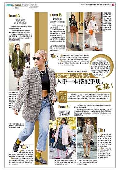 “学院风”浩浩荡荡回归,很多秀场的成衣系列都可看到经典学院风设计,往年流行的学院风更多是融入现代设计以契合时下流行元素,今年流行的学院风更注重勾勒上世纪八九十年代的复古气息。 ■新快报记者