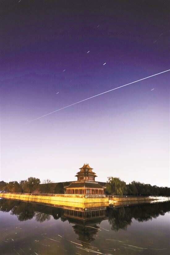 11月19日,在北京故宫午门拍摄的中国空间站过境照片(轨迹为多张照片堆栈)。 10月16日,神舟十三号载人飞船发射,开启中国迄今时间最长的载人飞行。3名航天员将在中国天宫空间站核心舱在轨驻留6个月。目前,空间站在距离地球约400千米的近地轨道运行,90分钟可绕地球一圈。空间站天和核心舱体积非常大,长度比五层楼房还要高,其折射的太阳光线比寻常人造天体更多,因此,在地球上看起来和星星一样亮。 普通市民可以通过微信小程序“天文通”等相关网站,查询到空间站的运行轨迹。
