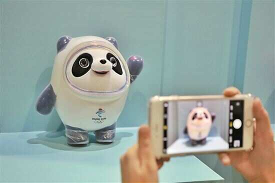 ■市民拍摄北京冬奥会吉祥物冰墩墩。新快报记者 李小萌/摄 |