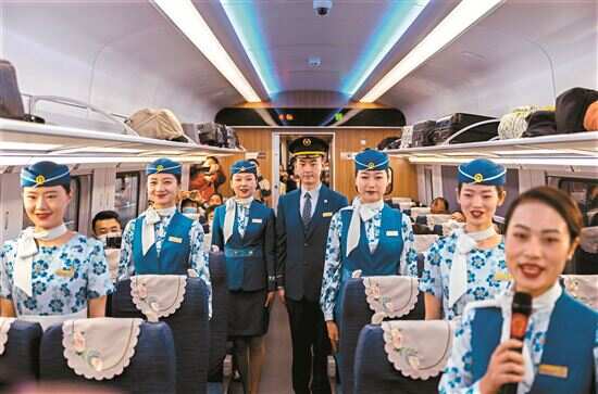 当日上午,中国铁路昆明局集团有限公司昆明客运段为即将开行的中老铁路而设计的列车员制服“丝路花语”首次亮相,它以“孔雀蓝”为主色调,搭配牡丹花、山茶花等元素。