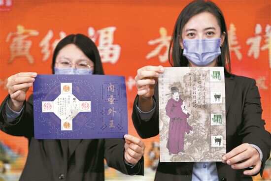 12月2日,工作人员在展示《内圣外王——邵雍诞辰一〇一〇周年》(左)和《王安石诞辰一千周年》个性化邮票。 当日,“壬寅纳福 方寸集祥”——先贤系列个性化邮票在北京首发。本次发布的《内圣外王——邵雍诞辰一〇一〇周年》个性化邮票,首次在邮票上呈现“河图洛书”“二十八星宿”等内容用以纪念北宋著名的哲学家、理学家、易学家、诗人邵雍。《王安石诞辰一千周年》个性化邮票采用宋版书的版式设计并以北宋宫廷画家郭熙的《早春图》为背景。新华社发