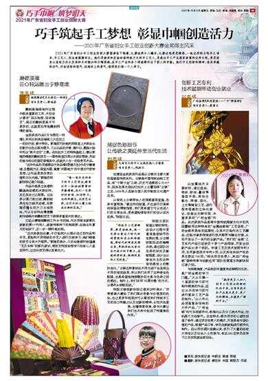 ——2021年广东省妇女手工创业创新大赛金奖得主风采 2021年广东省妇女手工创业创新大赛圆满落下帷幕,比赛结果令人瞩目,比赛过程更是精彩,一批优秀的女性手工项目、手工艺人、创业者脱颖而出