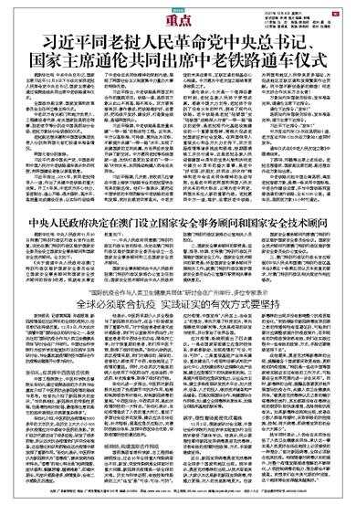 据新华社电 中央人民政府11月30日向澳门特别行政区行政长官作出批复,决定在澳门特别行政区维护国家安全委员会设立国家安全事务顾问和国家安全技术顾问。全文如下: 《关于提请中央人民政府在澳门