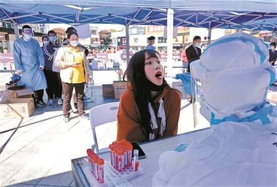 ■12月4日上午10时,在广州市白云区新市街百信广场东广场核酸检测点,市民群众在现场工作人员的指引下,有序进行核酸检测。新快报记者 孙毅/摄 |