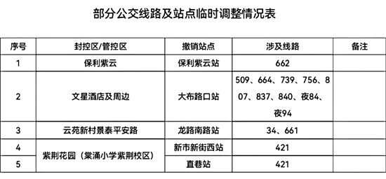 新快报讯 记者黎秋玲报道 记者从广州公交集团了解到,接上级部门通知,因疫情排查需要,截至12月4日14时,汇侨新城公交站场停止公交线路运营,白云区部分公交线路站点调整,共有240个公交中途站张贴“飞站”温馨提示。