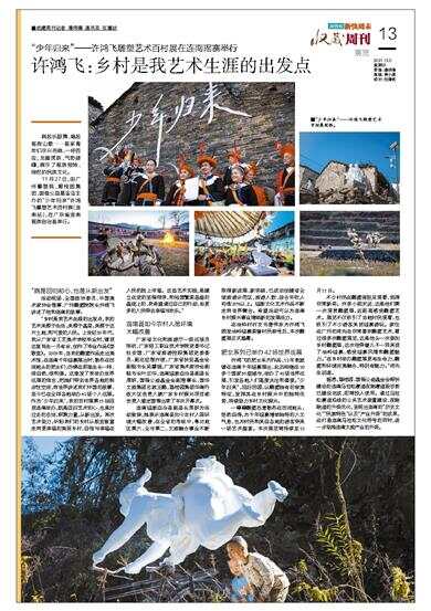 “少年归来”——许鸿飞雕塑艺术百村展在连南瑶寨举行 跳起长鼓舞、唱起瑶族山歌……瑶家青年们尽兴而跳、一呼百应,龙腾虎跃、气势磅礴,展示了瑶族独特、绚烂的民族文化。 11月27日,由广