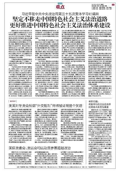 习近平在中共中央政治局第三十五次集体学习时强调 据新华社电 中共中央政治局12月6日下午就建设中国特色社会主义法治体系进行第三十五次集体学习。中共中央总书记习近平在主持学习时强调,我国正处