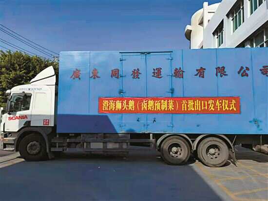 ■12月9日,汕头澄海狮头鹅(卤鹅预制菜)首批出口发车。 |