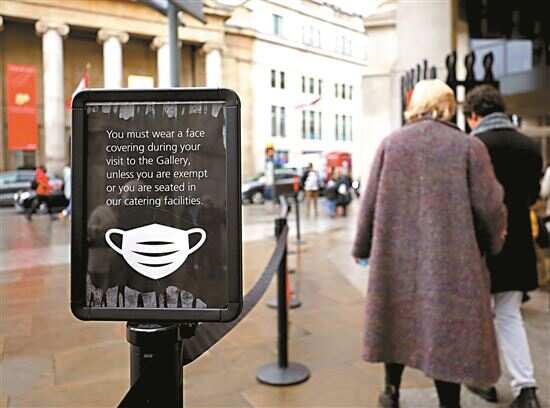 ■12月12日,在英国伦敦,人们经过英国国家美术馆门前要求参观者佩戴口罩的提示牌。 新华社发 |