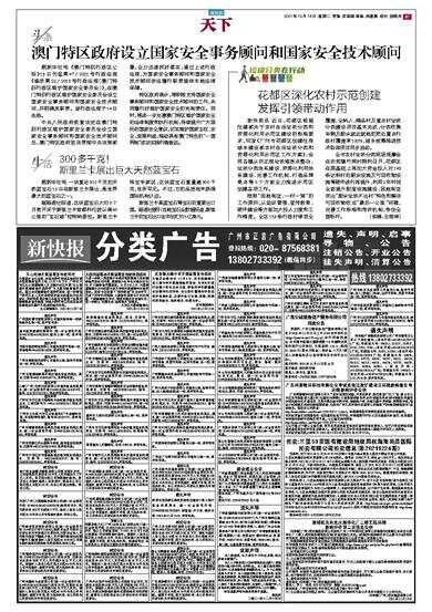 澳门特区政府设立国家安全事务顾问和国家安全技术顾问