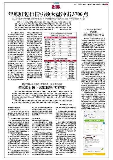 智能投顾≠基金投顾,监管将统一基金投顾标准 大力发展财富管理的银行突然按下智能投顾“暂停键”。日前,招商银行、工商银行、中信银行、广发银行等多家银行智能投顾服务暂停申购功能,但存量客户服务