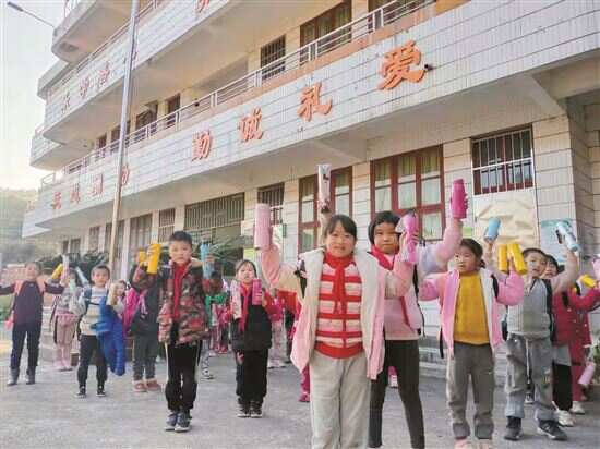 ■旺洞小学教学点的小朋友们拿着爱心企业送来的日常用品,非常开心。 |