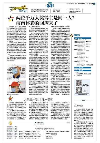两位千万大奖得主是同一人? 海南体彩的回应来了
