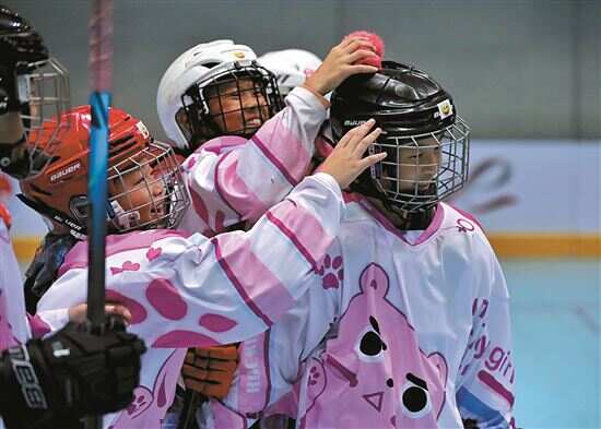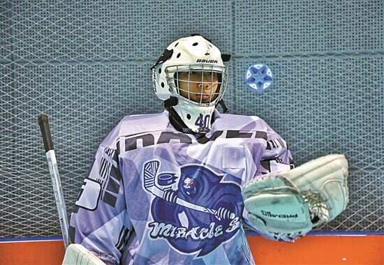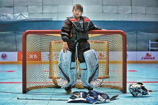 ■林冰妍,五年级学生,从小学一年级就开始练冰球,在女二梯队里已经算是老队员了。 |