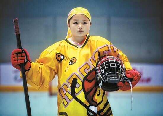 ■曾梓柔,14岁,练冰球6年,是队里的核心人物:队长。 |