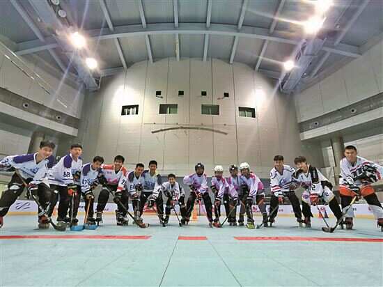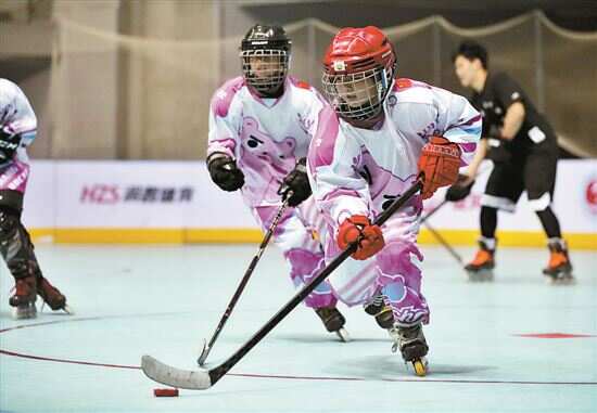 每周末,广州旋风轮滑冰球馆里,20多名学生在教练带领下练习冰球。他们最大的17岁,最小的才读一年级。 |