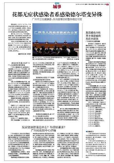 广州市卫生健康委:本次疫情目前整体稳定可控 新快报讯 12月17日下午,广州市政府举行疫情防控新闻发布会。会上,广州市卫生健康委、花都区、市疾控中心、南方航空公司相关负责人通报广州市新冠肺