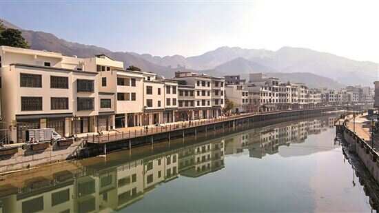 ■改造中的双合村,可谓“一日一变”,一栋栋依山傍水的民房灰砖白墙黛瓦,风格统一别致,既有岭南古风,又显“小桥流水人家”的现代乡村韵味。 |