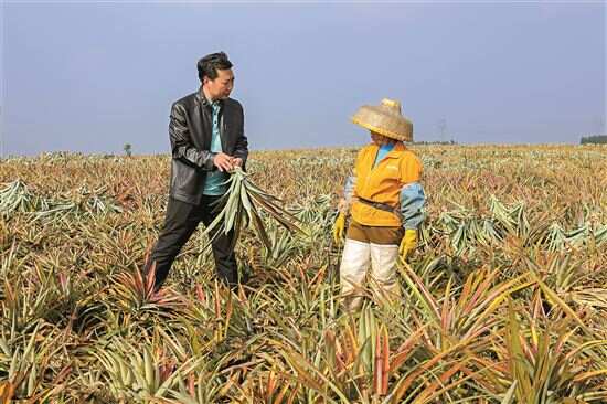 ■驻和安镇工作队队长王明利到镇里的菠萝种植地走访调研。 |