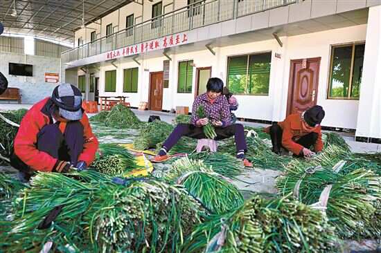 ■在怀集县冷坑镇的和平蔬菜基地,工人们在挑选韭菜。 |