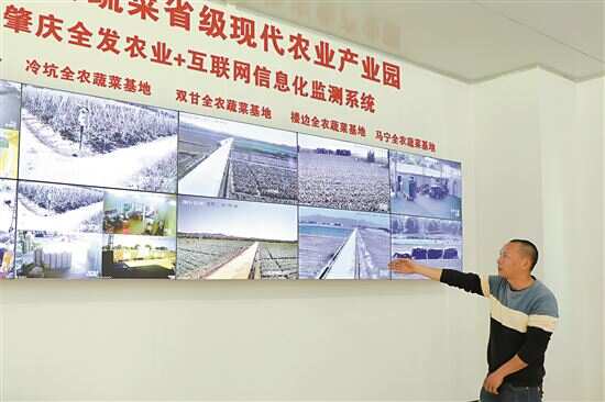 ■怀集县润丰农业发展有限公司基地负责人黄维正介绍农业互联网信息化监测系统。 |